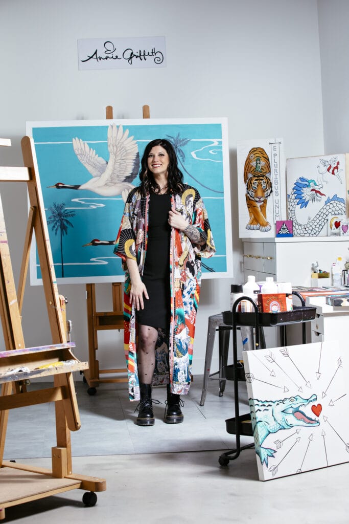 Annie Griffeth is a versatile illustrative artist who infuses magical realism throughout her bold mixed media art. Each of her pieces tell a story that evoke real emotions as well as celebrating everyday joys and challenges.
