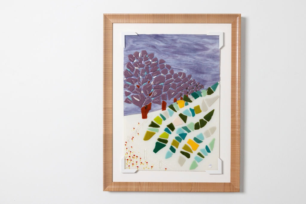 Using shattered glass pieces, of purples and greens, this piece showed the hazy sky against the French landscapes. The colors of the tree and grass are totally unconventional because I wanted viewers to experience the landscape not as it appears to the eye, but the emotion that nature stirs within us.