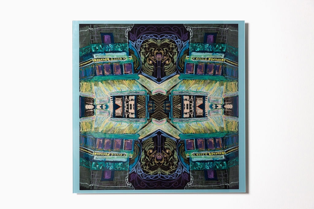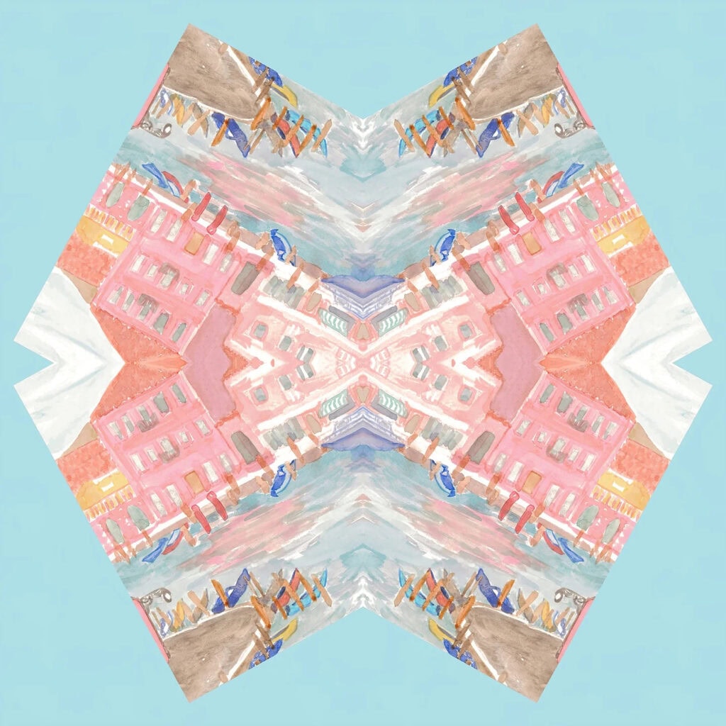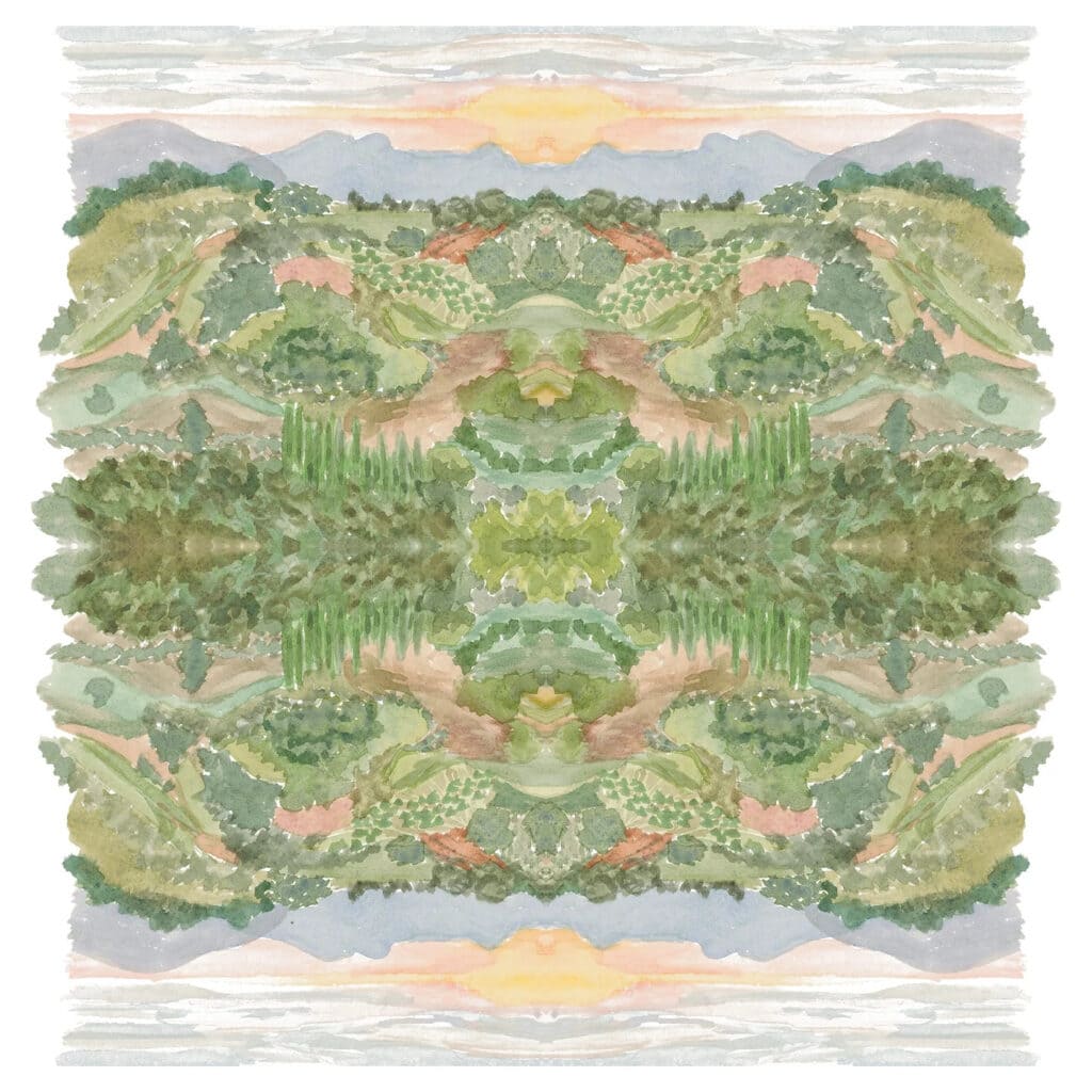 How about escaping to the French countryside? The delicate strokes and colors of this kaleidoscope print form my impressions of the views as I traveled through the countryside during my artist residency in France. It was a time of simplifying expectations, embracing curiosity, and breaking down perfectionism. I still feel that sereneness when I look at this piece.